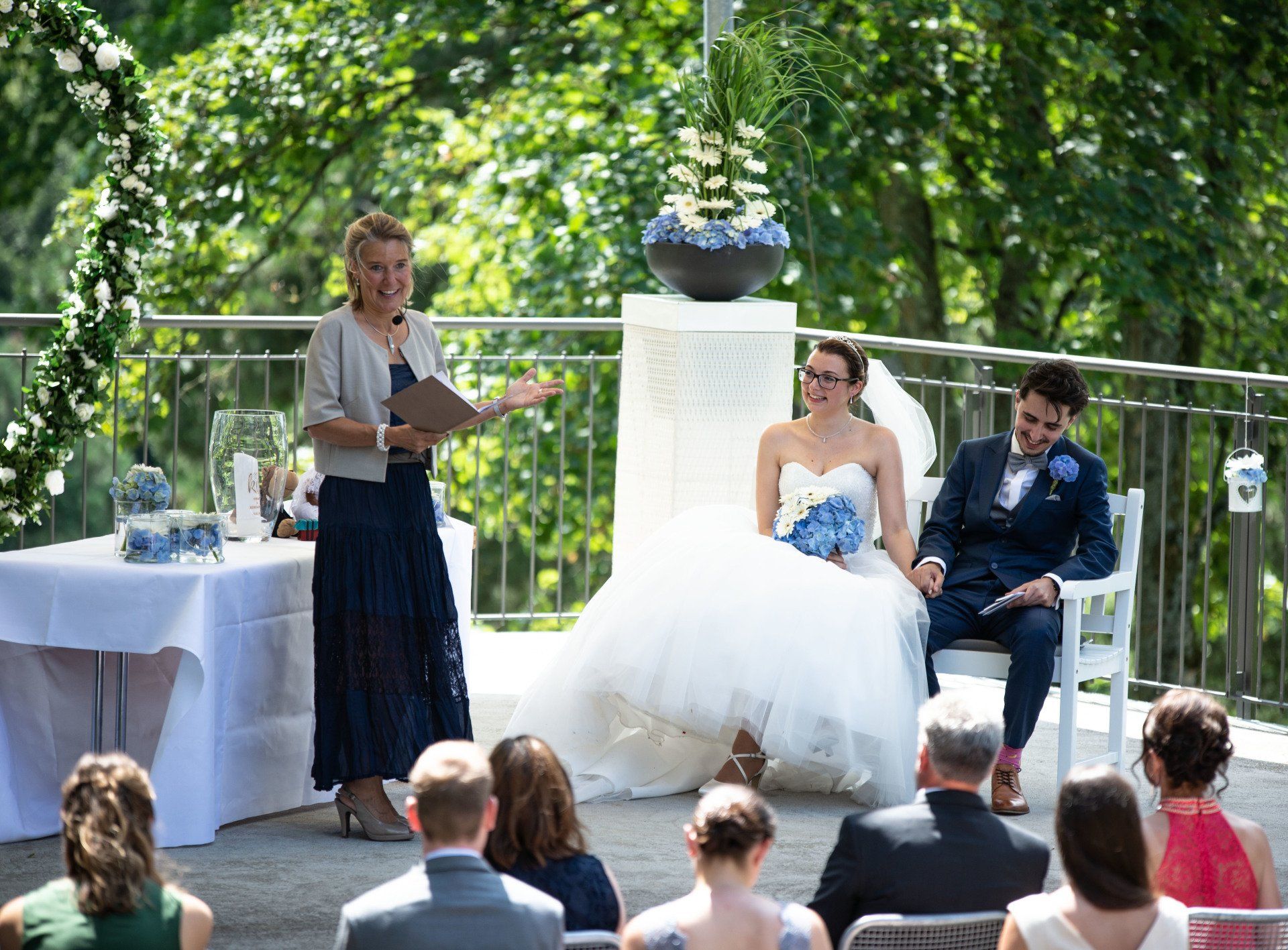 ...danke für eine perfekte Trauung, schöner hätten wir es uns wirklich nicht ausmalen können. Du hast genau den richtigen Ton zwischen Witz und Emotion getroffen und standest mir zur Seite als meine Braut mich etwas schmoren ließ ;) Vielen Dank dafür.